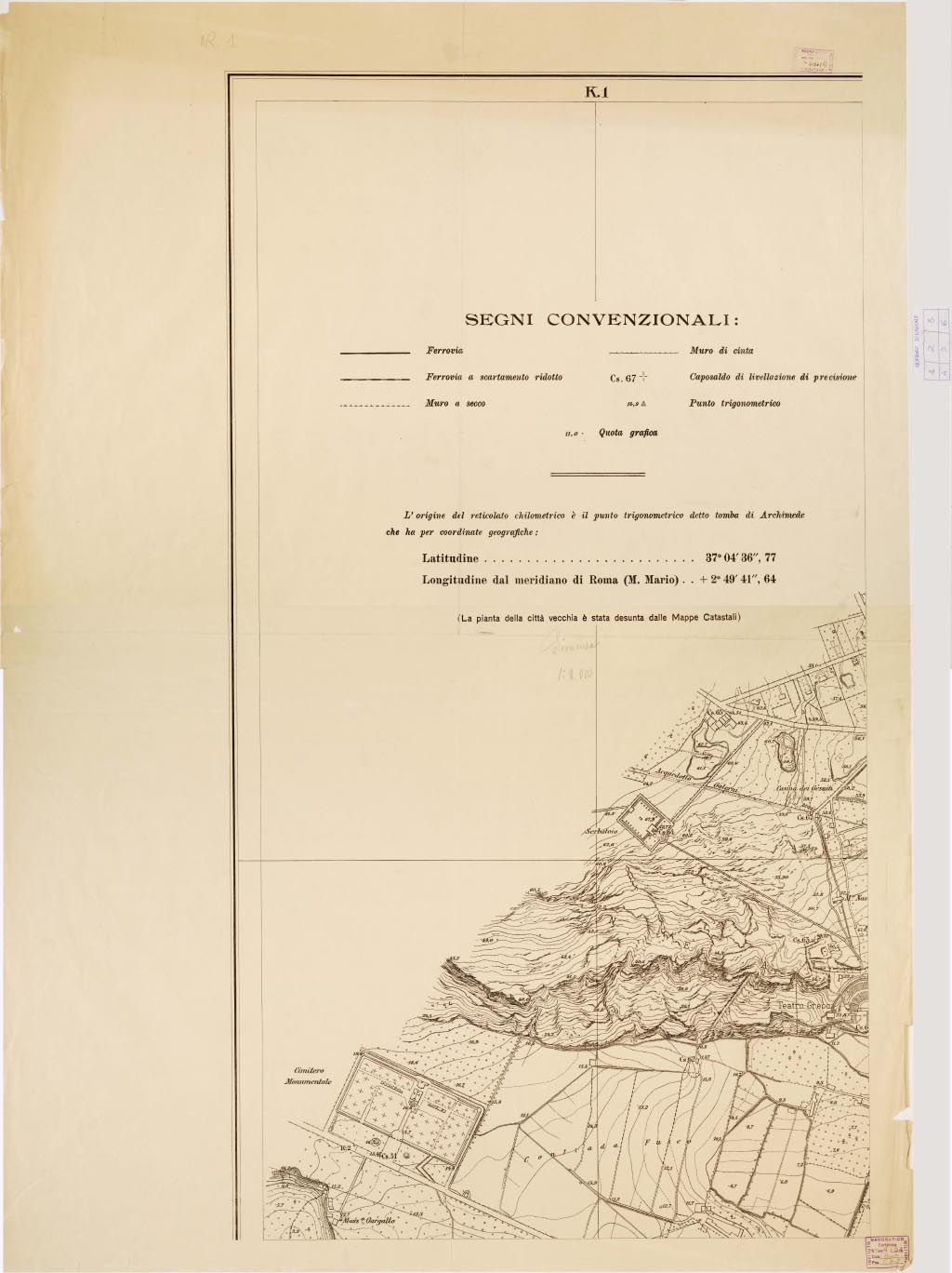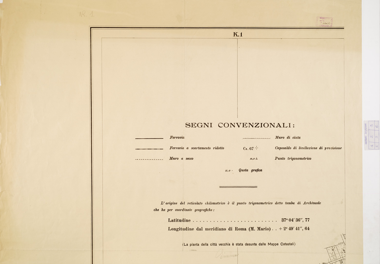 PIANTA DELLA CITTA' DI SIRACUSA - Foglio 1 + Quadro d'Unione