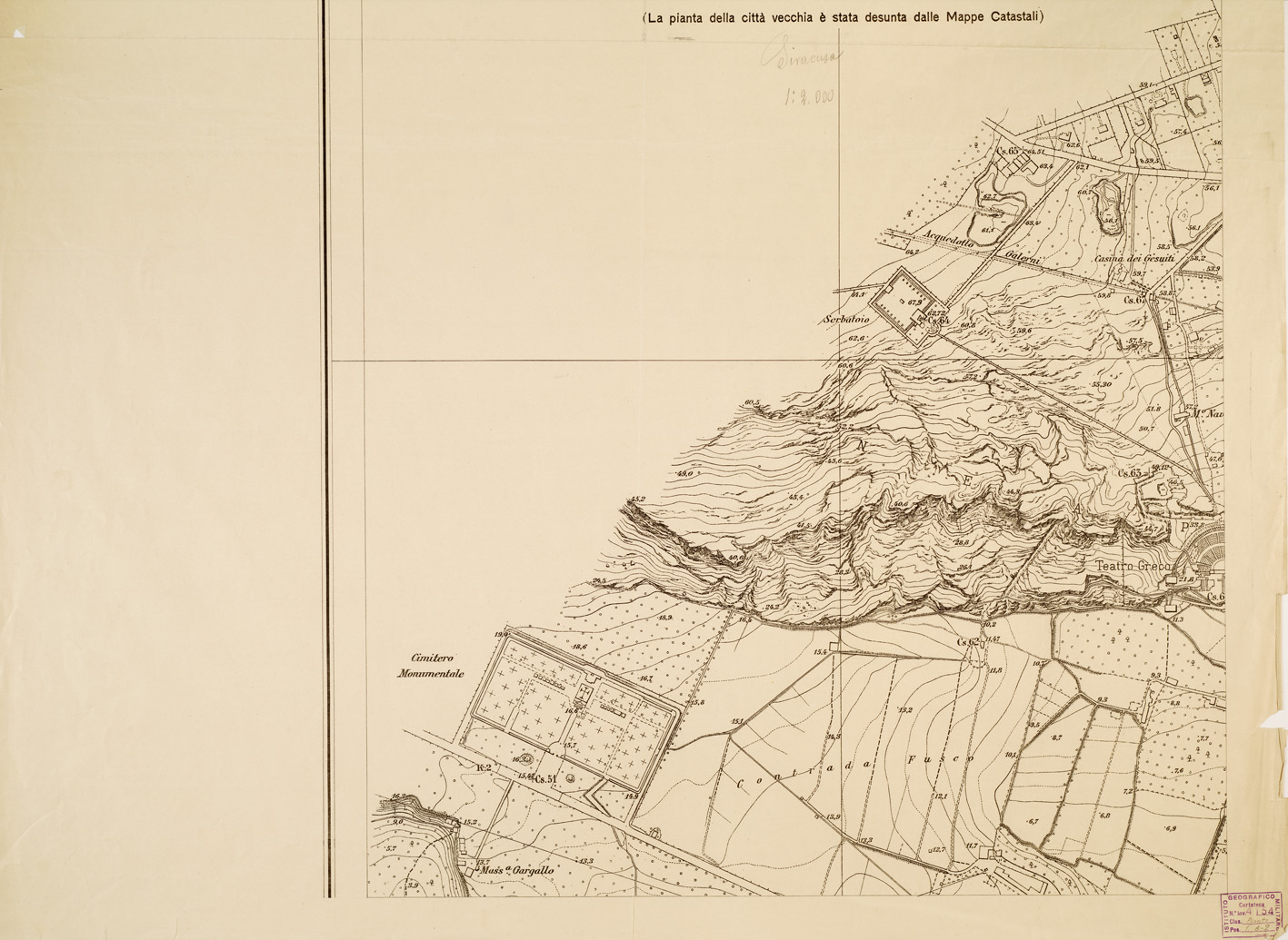 "Sei fogli, ingrandimento al 2.000 dell'originale eseguito nel 1927 dai Top. Grupelli e Cantarini dell'I.G.M. Una nota avverte che la pianta della città vecchia è stata desunta dalle mappe catastali. Orografia a curve di livello. Stampa in nero. Dimensioni varie."