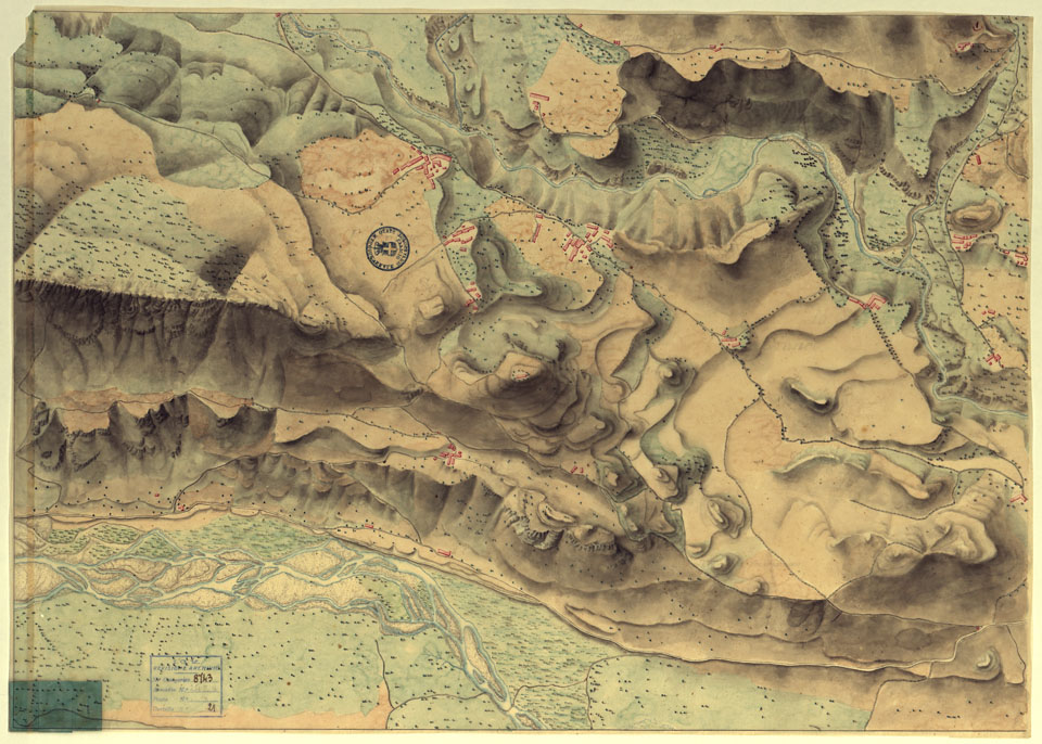 PIANO GEOMETRICO DELLA POSIZIONE DEL FORTE DI DEMONTE E I SUOI CONTORNI ALLA DISTANZA DI CIRCA UN MIGLIA DI P.TE ALLA SCALA DI 1 5.000 - FOGLIO 1 + LUCIDO.