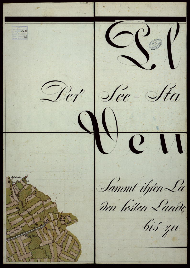 "Piano della città marittima e fortezza di Venezia colle sue lagune e colla terra ferma che le circonda, dalla foce dell'adige e quella del Piave. Copia della carta del Denaix eseguita dal 1800 al 1808 alla scala di 1:18.000 in trenta fogli. Il disegno fu eseguito nel 1836 la riduzione nel 1837 a spesa del Genio terrestre austriaco. Consta di trenta fogli ad acquerello montati su tela. Colori usati : azzurro per l'idrografia, rosso per gli abitati e le strade principali, verde per le coltivazioni. Il foglio 1 contiene il quadro di unione. I fogli 9 e 10 recano il titolo il foglio 20 contiene notizie sulla costruzione della carta: il foglio 25 la rosa dei venti il foglio 30 notizie sulla luguna. Annessi alla carta sono un piano del Forte di S.Pietro pure ad acquerello alla scala di 1:2.500 e una carta dei "sondaggi lungo la costa tra il Forte Alberone e la Batteria Quattro Fontane" firmata "Salis Soglio maggio 1847"."