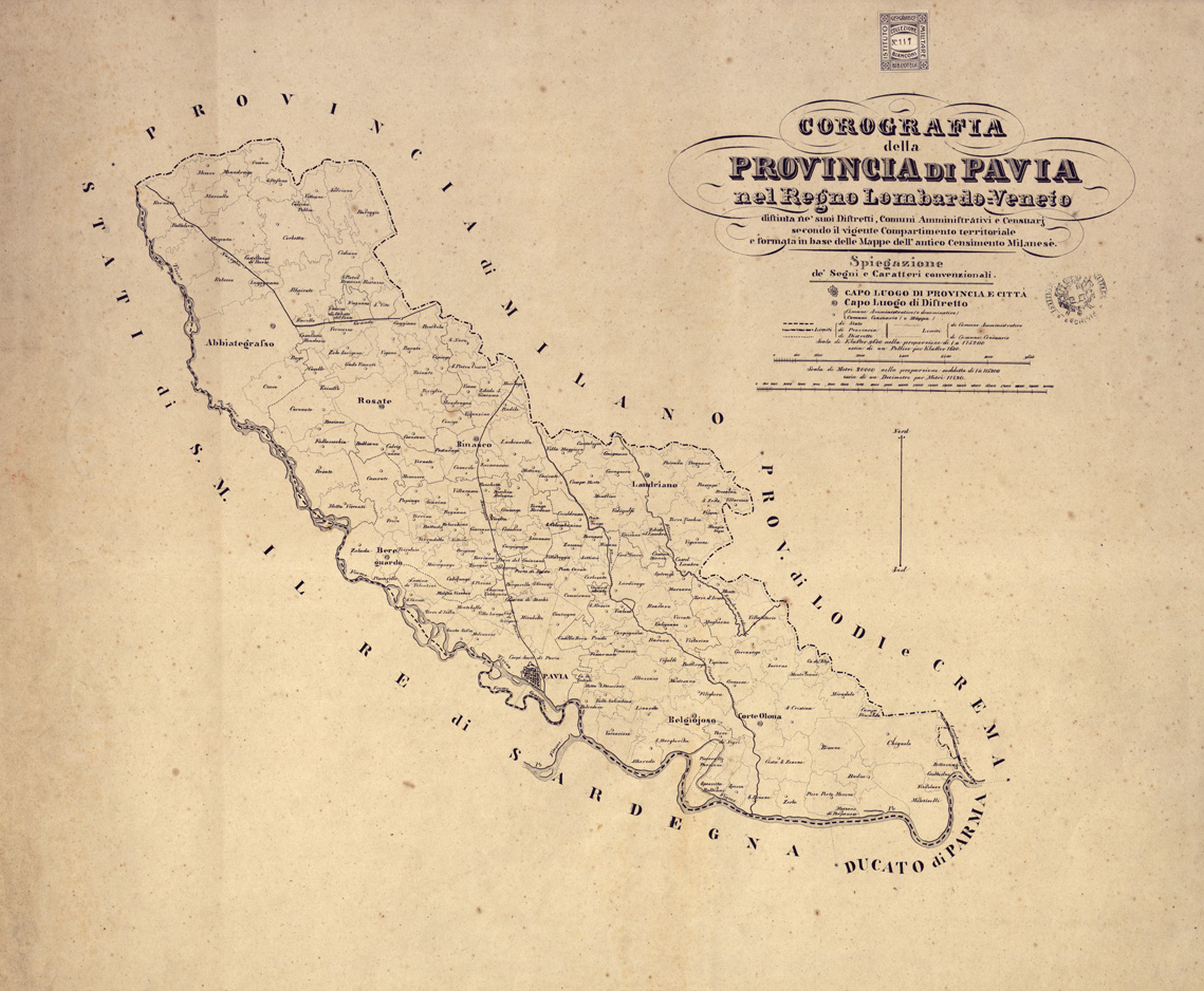 COROGRAFIE DELLE PROVINCIE DEL REGNO LOMBARDO-VENETO OGNUNA DELLE QUALI "DISTINTA NE' SUOI DISTRETTI E COMUNI CENSUARI, FORMATA IN BASE DELLE MAPPE DEL NUOVO CENSIMENTO" - Provincia di Pavia