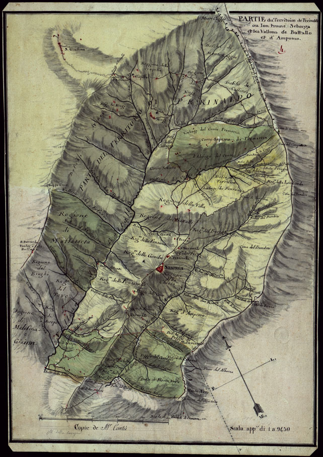 PARTIE DU TERRITOIRE DE PERINALDO OU LìON TROUVE SEBORGA ET LES VALLONS DE BATTALLO ET D'AMPOMO + RETRO.