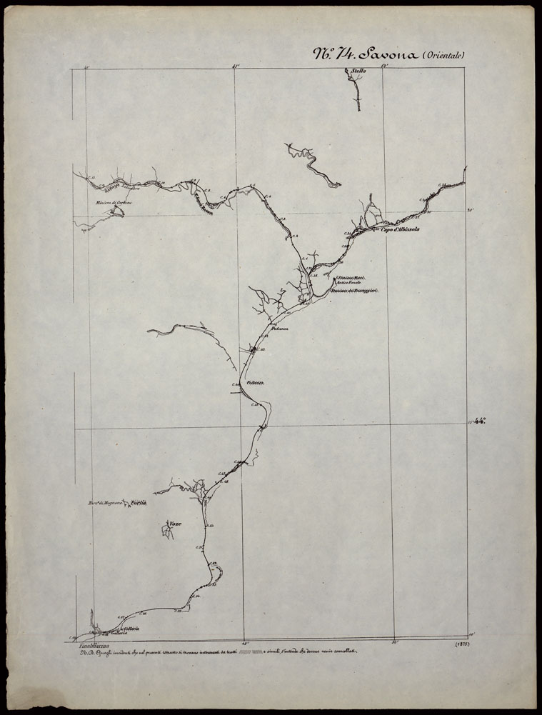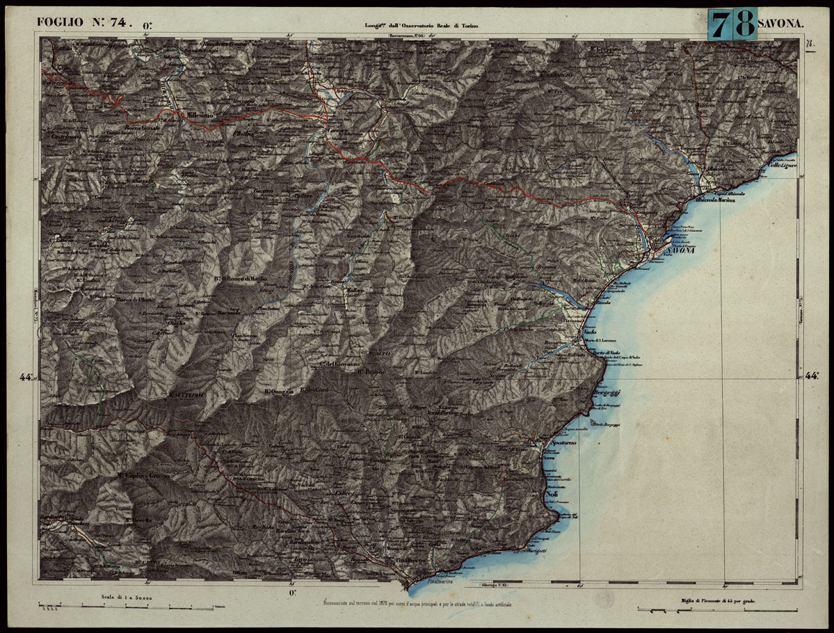 CARTA TOPOGRAFICA DEGLI STATI IN TERRAFERMA DI S.M. IL RE DI SARDEGNA ALLA SCALA DI 1.A 50.000. OPERA DEL CORPO REALE DELLO STATO MAGGIORE - FOGLIO N.°74. - SAVONA + DOCUMENTO DI AGGIORNAMENTO PARTE OCCIDENTALE E ORIENTALE