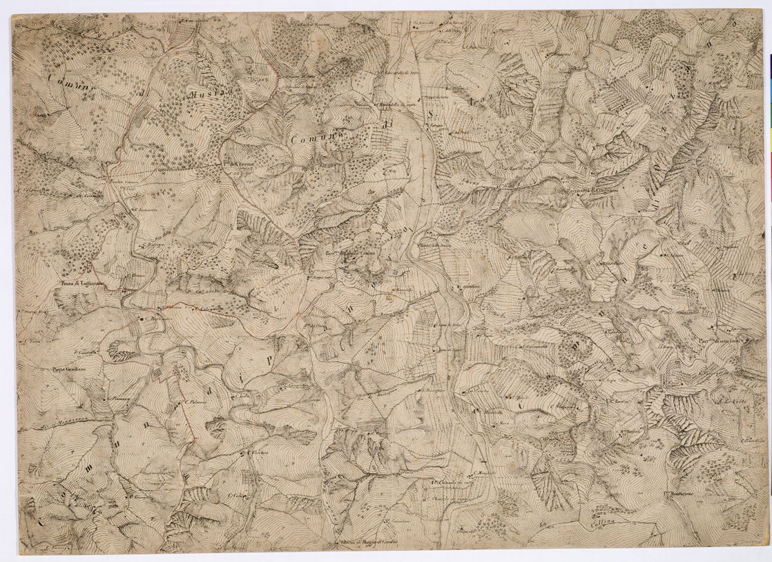 "Rappresentazione orografica planimetrica. La copia è montata su cartoncino rigido e presenta il numero di inventario 5384 bis."