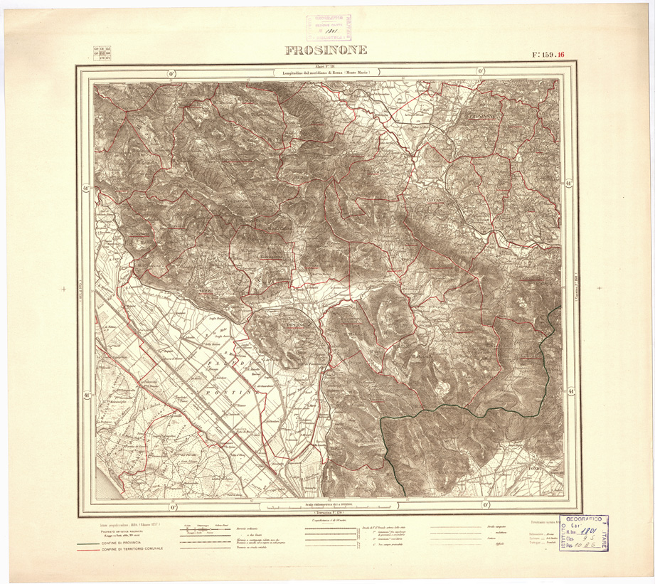 CARTA DELLA PROVINCIA DI ROMA COI CONFINI DEI TERRITORI COMUNALI - Frosinone - Foglio 159.16