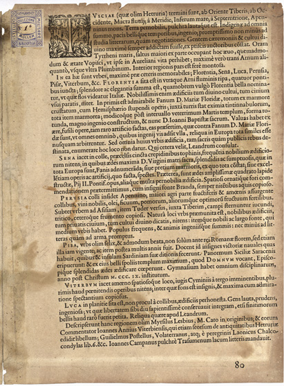 "Tav.I-4: Disegno inciso su rame a vari colori, bene conservato. Il territorio è delimitato a nord dalla displuviale appenninica della Toscana, ad est dal corso del Tevere fino alla foce, a sud dalle isole del Giglio e di Giannutri, ad ovest dalla Magra comprendendo il lembo nord- orientale della Corsica. Sul retro dlla carta, File B0004394, la descrizione dell'area rappresentata. Il Documento contiene 7 tavole dell'Atlante pubblicato nel 1570 da Abramo Ortelio, dotto geografo e sommo cartografo, detto il Tolomeo del suo secolo, amico di Gerardo Mercatore, nato ad Anversa nel 1527, morto nel 1598. Altre edizioni di questo Atlante si ebbero nel 1571, nel 1573, nel 1592 e nel 1595 in queste il numero delle tavole andò via via aumentando da 53 della edizione primitiva, a 115 in quella del 1595. Nel 1608 Filippo Pigafetta pubblicò ad Anversa una edizione italiana di 127 tavole. Le tavole della prima edizione sono state incise da Francesco Hogenberg. Il documento è composto dalle seguenti Tavole: Tavola I-0: LARII LACUS, VULGO COMENSIS - FORII JULII, VULGO FRIVLI TYPUS - TERRITORII ROMANI DESCRIPT. - File B0008727 Tavola I-1: ITALIAE NOVISSIMA DESCRIPTIO AUTORE IACOPO CASTALDO PEDEMONTANO Tavola I-2: ITALIAE NOVISSIMA DESCRIPTIO AUTORE IACOPO CASTALDO PEDEMONTANO - File B0008728 Tavola I-3: ITALIA GALLICA SIVE GALLIA CISALPINA, EX CONATIBUS GEOGRAPHICIS ABRAH. ORTELIJ - File B0008175 Tavola I-4: THUSCIAE DESCRIPTIO AUCTORE HIERONIMO BELLARMATO - File B0004393-94 Tavola I-5: TUSCIAE ANTIQUAE TYPUS EX CONATIBUS GEOGRAPHICIS ABRAH. ORTELIJ - File B0000104 Tavola I-6: PERUSINI AGRI EXACTISSIMA NOVISSIMAQUE DESCRIPTIO: AUCTORE EGNATIO DANTE - File B0005508 Tavola I-7: SENENSIS DITIONIS, ACCURATA DESCRIP. - File B0014062-63"
