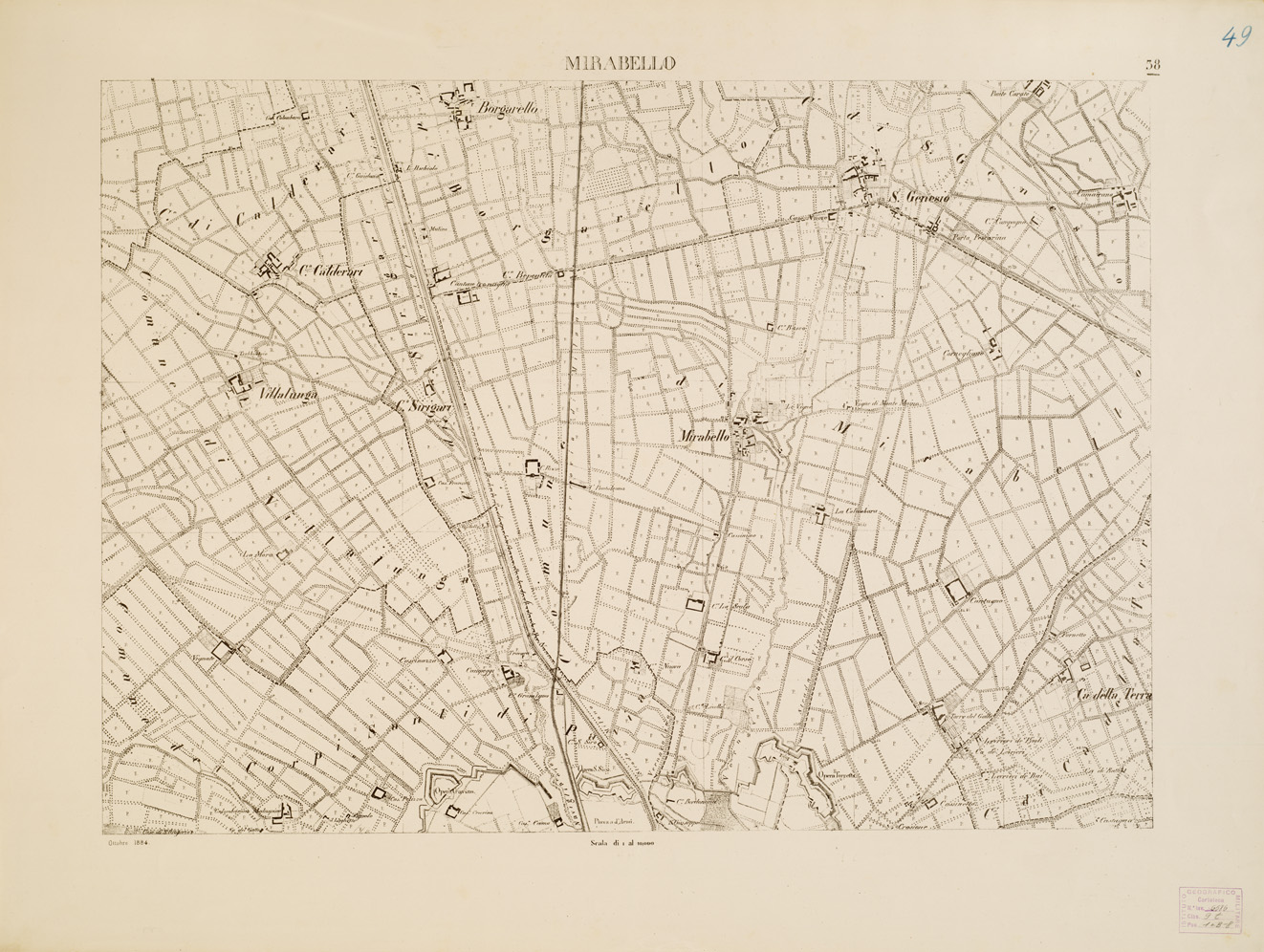 CARTA TOPOGRAFICA DELLA VALLE DEL PO' DA CASALE A PAVIA - Foglio 38 MIRABELLO