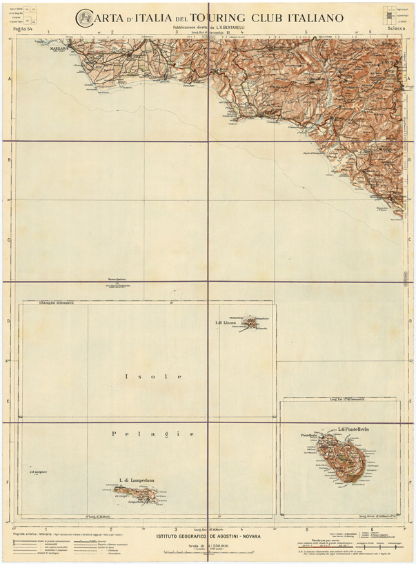 CARTA D'ITALIA DEL TOURING CLUB ITALIANO - Foglio 54 SCIACCA