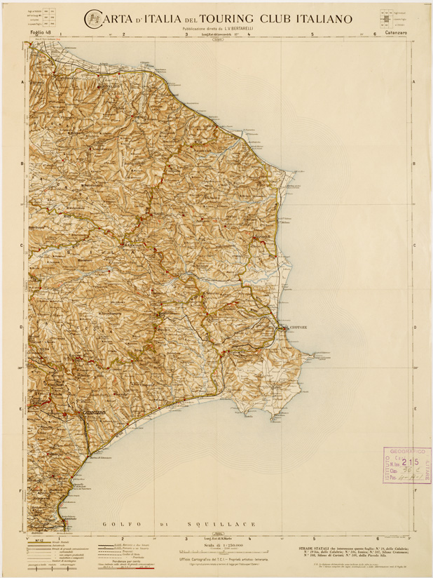 CARTA D'ITALIA DEL TOURING CLUB ITALIANO PUBBLICAZIONE DIRETTA DA L.V. BERTARELLI - Foglio 48 - Catanzaro.
