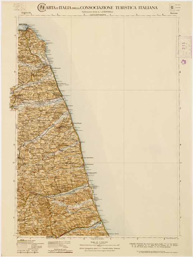 CARTA D'ITALIA DEL TOURING CLUB ITALIANO PUBBLICAZIONE DIRETTA DA L. V. BERTARELLI - Foglio 25 - Ancona.