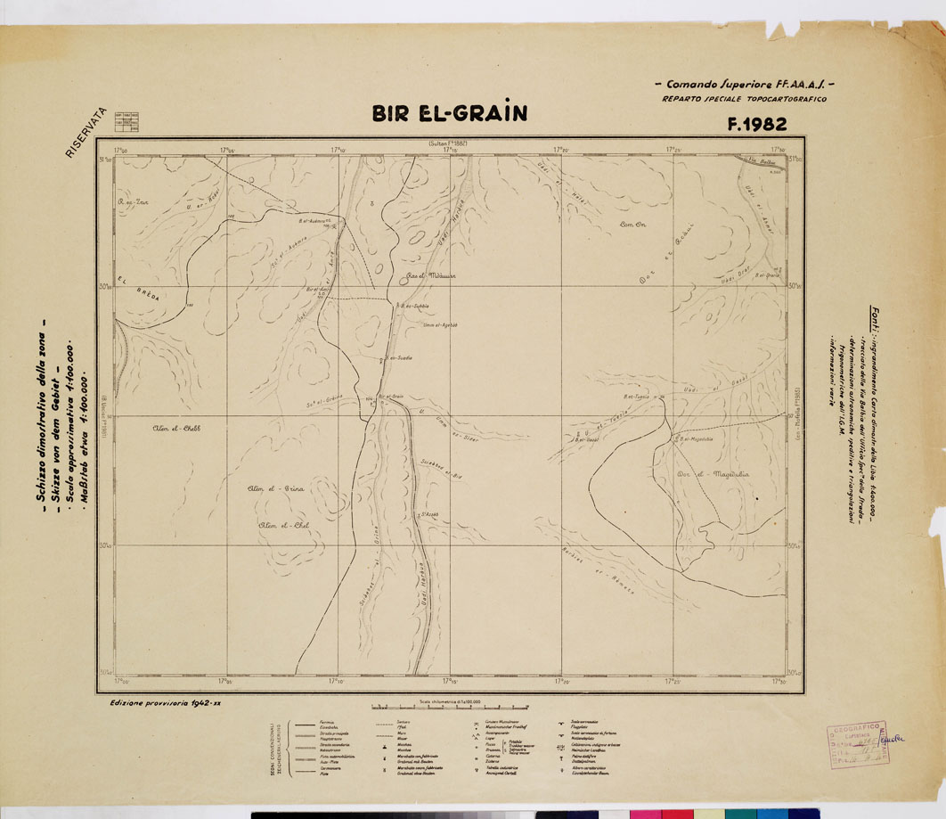 CARTA DELLA CIRENAICA :SUD DEL BENGASI - SIRTICA - CIRENAICA CENTRO ORIENTALE - BIR EL-GRAIN F 1982