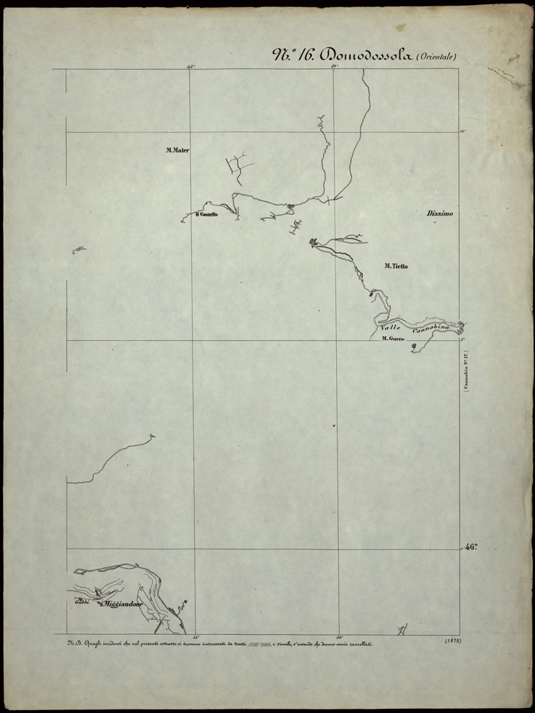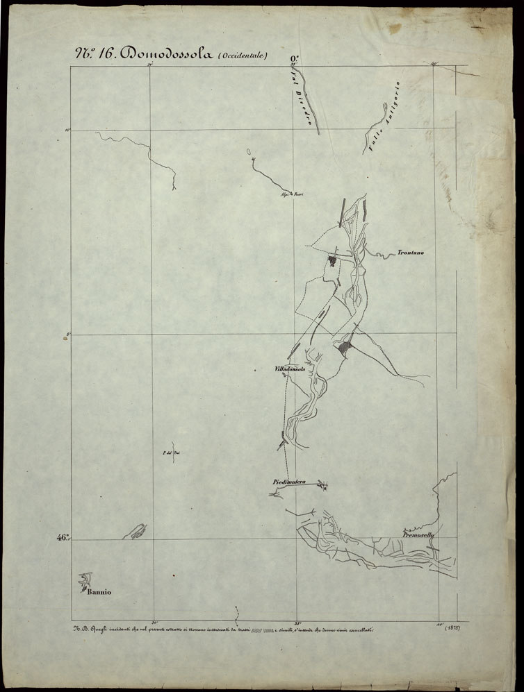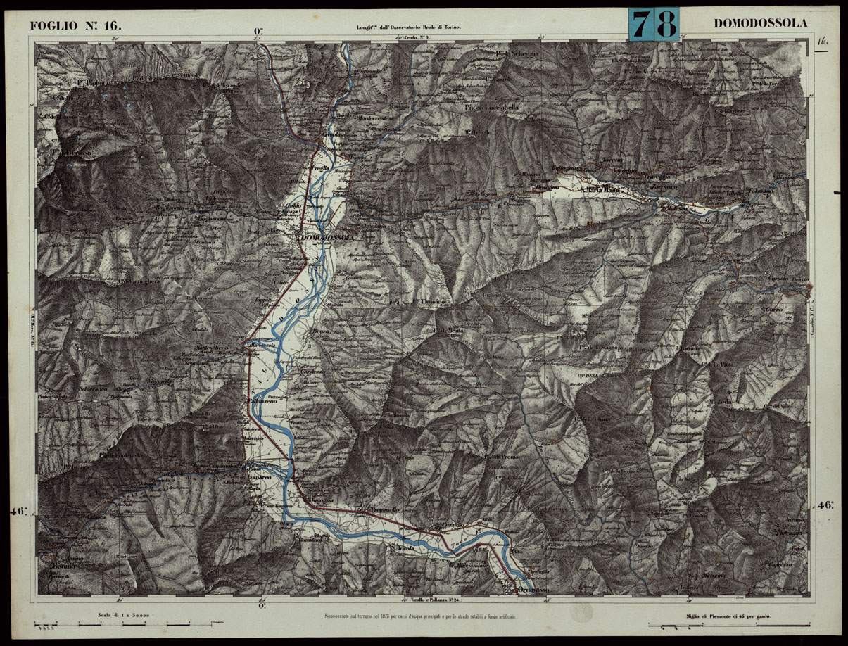 CARTA TOPOGRAFICA DEGLI STATI IN TERRAFERMA DI S.M. IL RE DI SARDEGNA ALLA SCALA DI 1.A 50.000. OPERA DEL CORPO REALE DELLO STATO MAGGIORE - FOGLIO N.°16. DOMODOSSOLA + DOCUEMNTO DI AGGIORNAMENTO PARTE OCCIDENTALE E ORIENTALE
