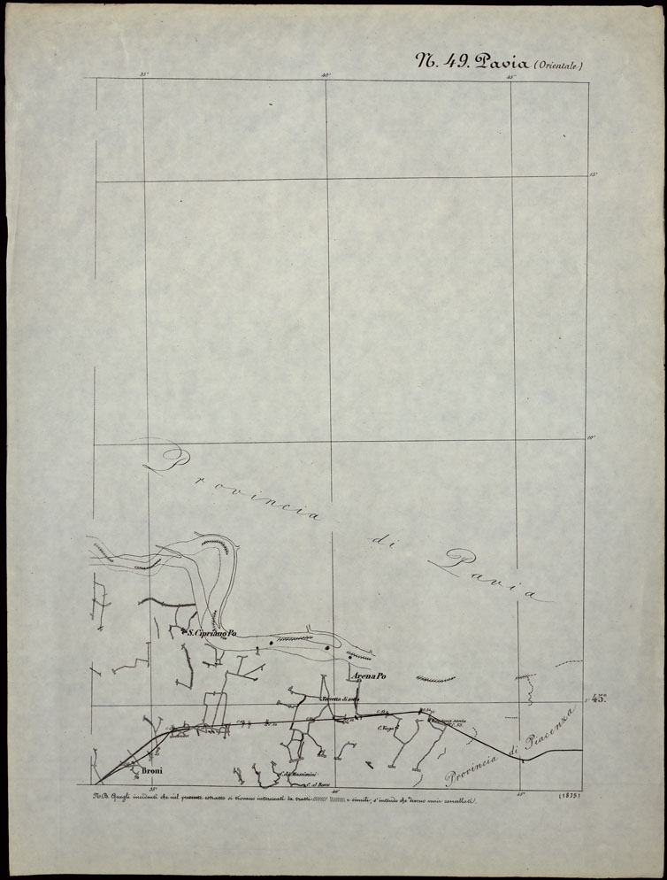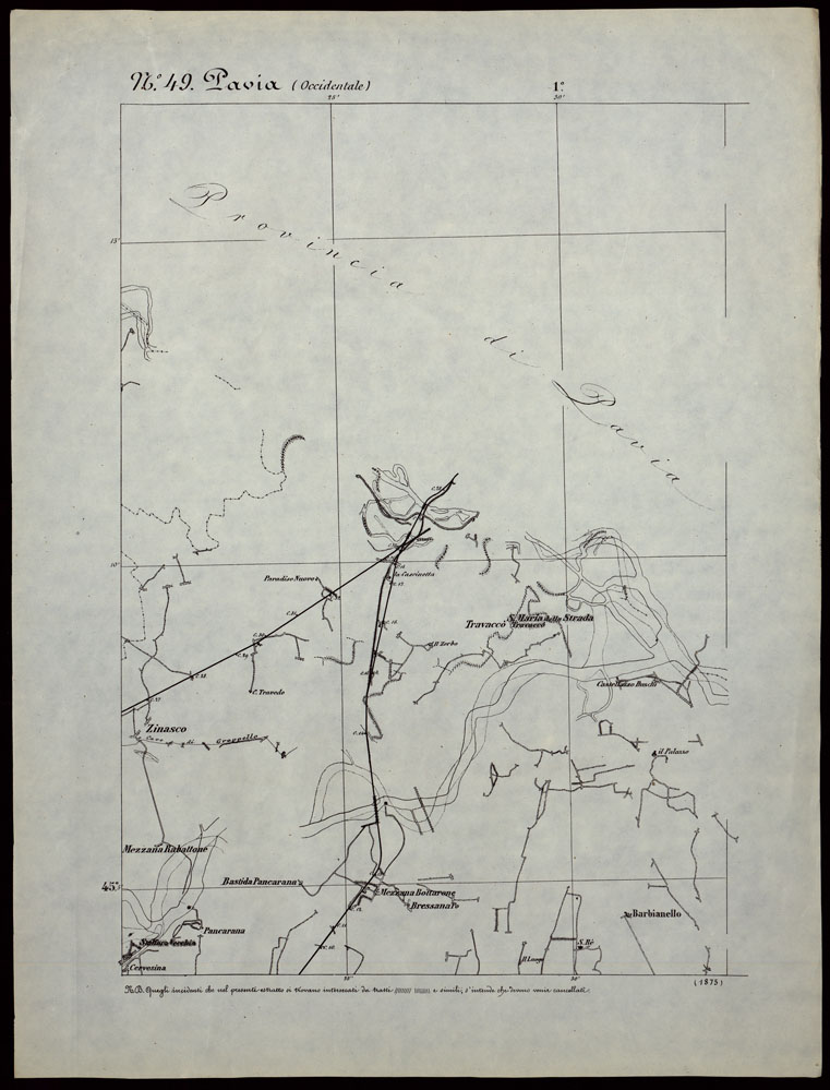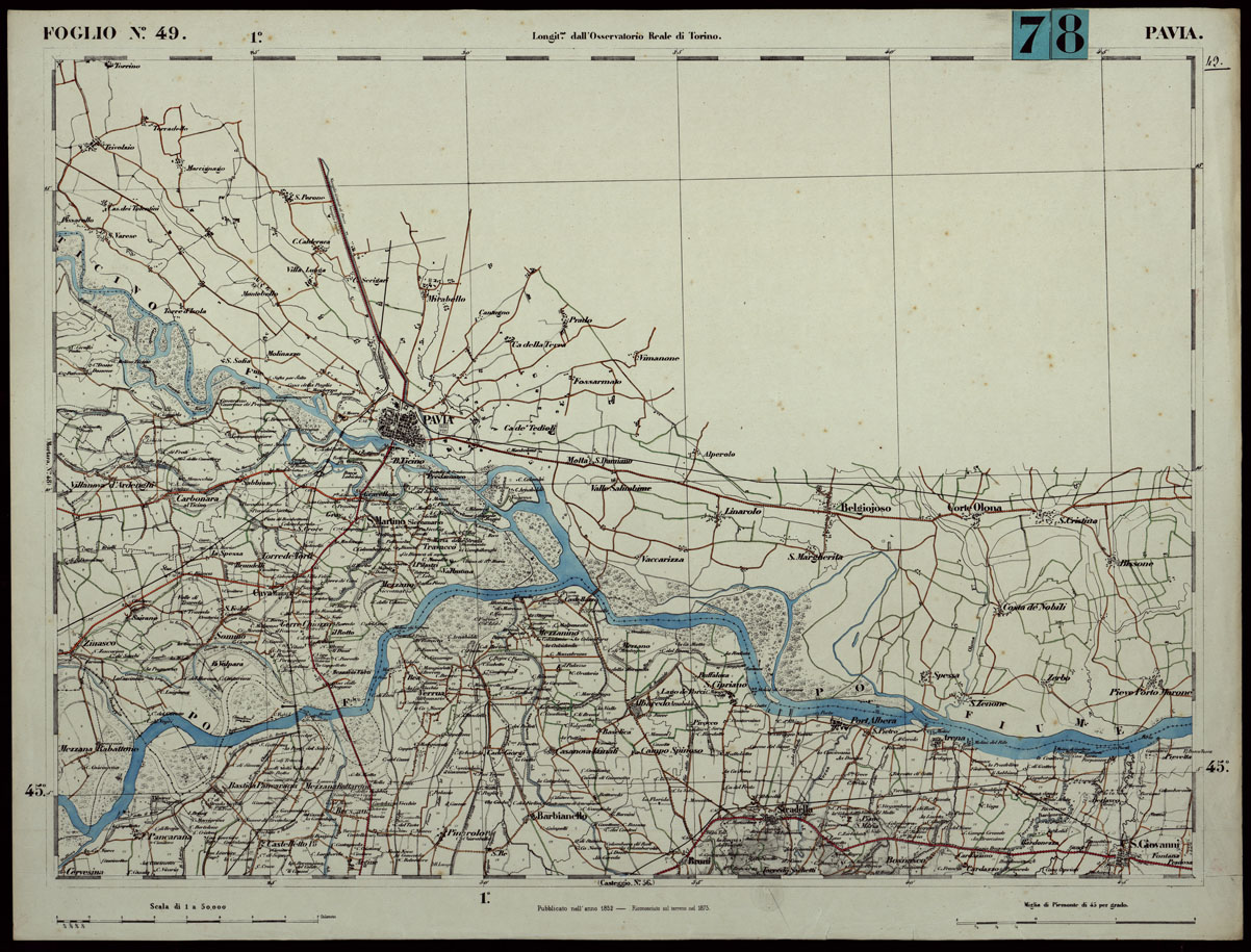 CARTA TOPOGRAFICA DEGLI STATI IN TERRAFERMA DI S.M. IL RE DI SARDEGNA ALLA SCALA DI 1.A 50.000. OPERA DEL CORPO REALE DELLO STATO MAGGIORE - FOGLIO N.°49. PAVIA + DOCUMENTO DI AGGIORNAMENTO PARTE OCCIDENTALE E ORIENTALE