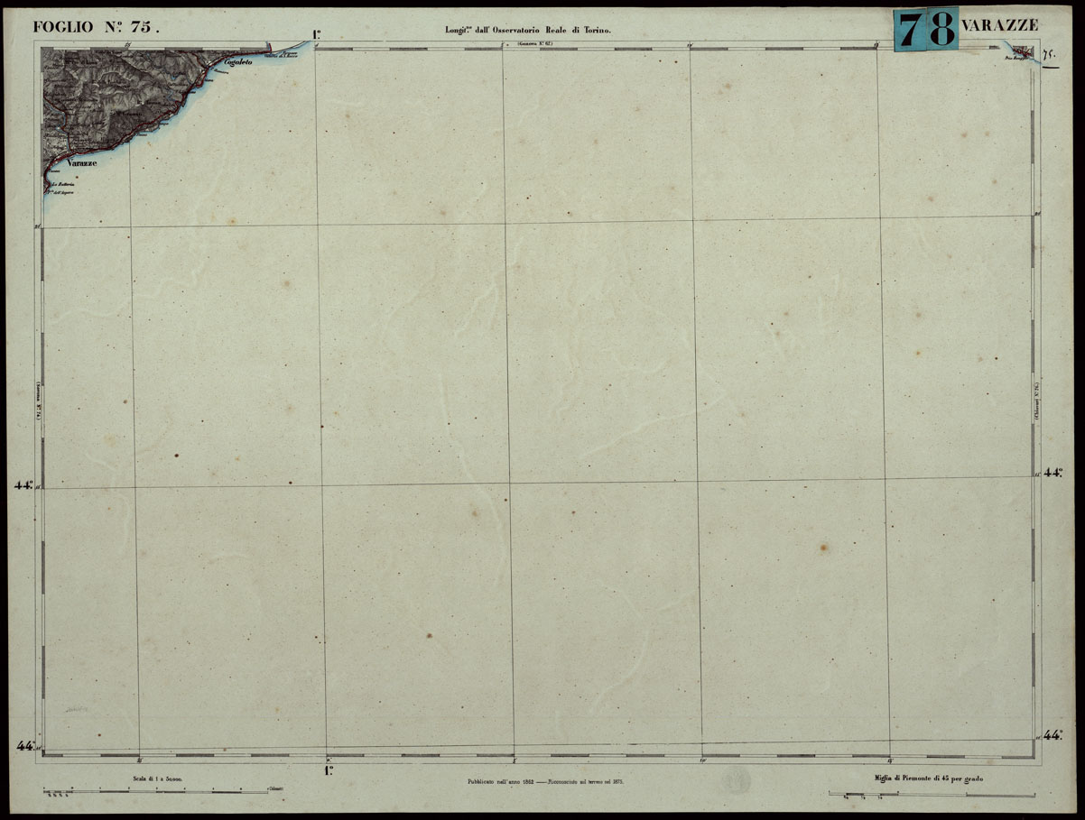 CARTA TOPOGRAFICA DEGLI STATI IN TERRAFERMA DI S.M. IL RE DI SARDEGNA ALLA SCALA DI 1.A 50.000. OPERA DEL CORPO REALE DELLO STATO MAGGIORE - FOGLIO N.°75. - VARAZZE + DOCUMENTO DI AGGIORNAMENTO UNICO