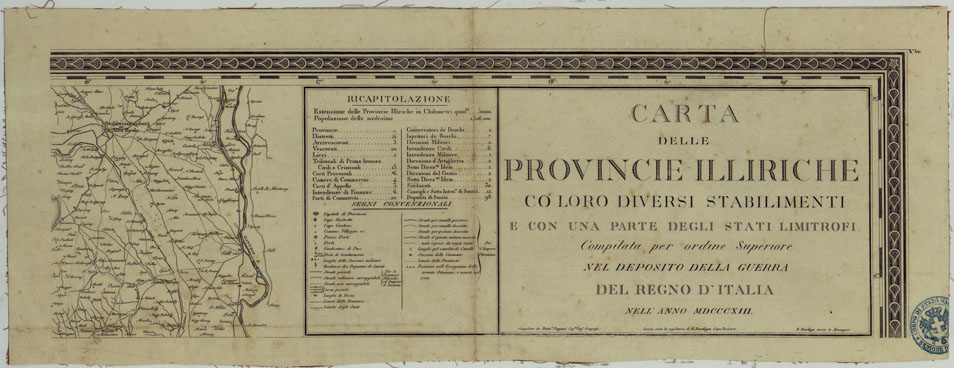 CARTA DELLE PROVINCIE ILLIRICHE CO' LORO DIVERSI STABILIMENTI E CON UNA PARTE DEGLI STATI LIMITROFI COMPILATAPER ORDINE SUPERIORE NEL DEPOSITO DELLA GUERRA DEL REGNO D'ITALIA NELL'ANNO MDCCCXIII - TAVOLA X BIS - Titolo