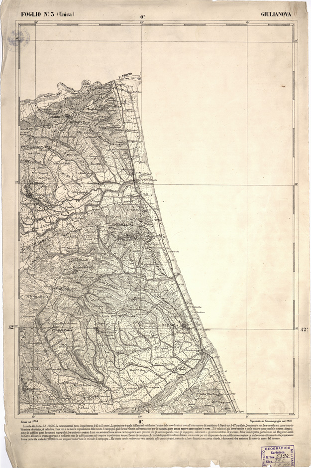 CARTA DELL' ITALIA MERIDIONALE EDITA DALL'ISTITUTO TOPOGRAFICO MILITARE ITALIANO - Foglio 3 - Giulianova