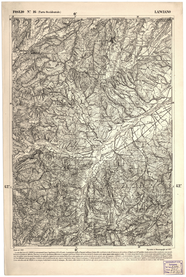 I rilevamenti topografici per la realizzazione della “Carta d´Italia&lrquo” iniziarono nel 1878: si trattava di un´opera così importante e lodevole che meritò la consapevole attenzione, non solo degli addetti ai lavori e delle categorie professionali coinvolte, ma anche delle più alte autorità del Regno.