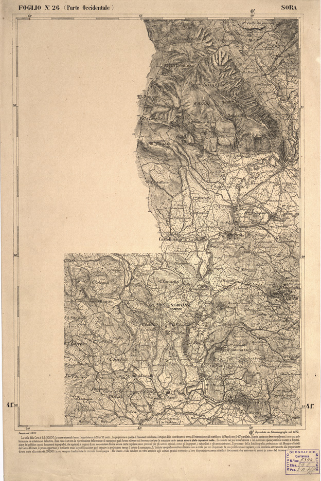 CARTA DELL' ITALIA MERIDIONALE EDITA DALL'ISTITUTO TOPOGRAFICO MILITARE ITALIANO - Foglio 26 parte occidentale - Sora