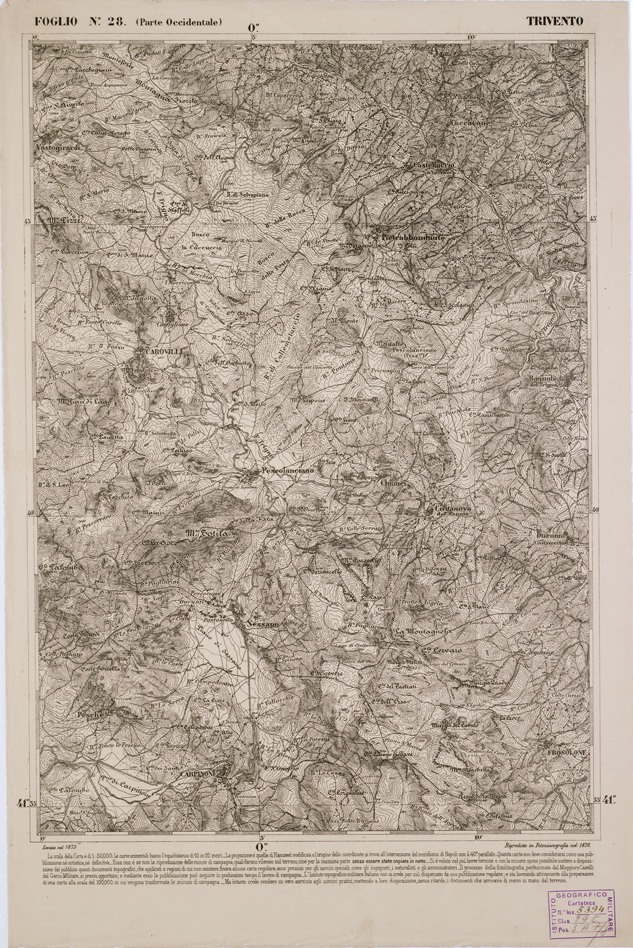 CARTA DELL' ITALIA MERIDIONALE EDITA DALL'ISTITUTO TOPOGRAFICO MILITARE ITALIANO - Foglio 28 parte occidentale - Trivento
