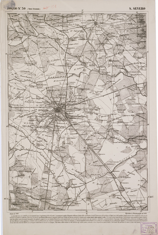 CARTA DELL' ITALIA MERIDIONALE EDITA DALL'ISTITUTO TOPOGRAFICO MILITARE ITALIANO - Foglio 30 parte orientale - S. Severo