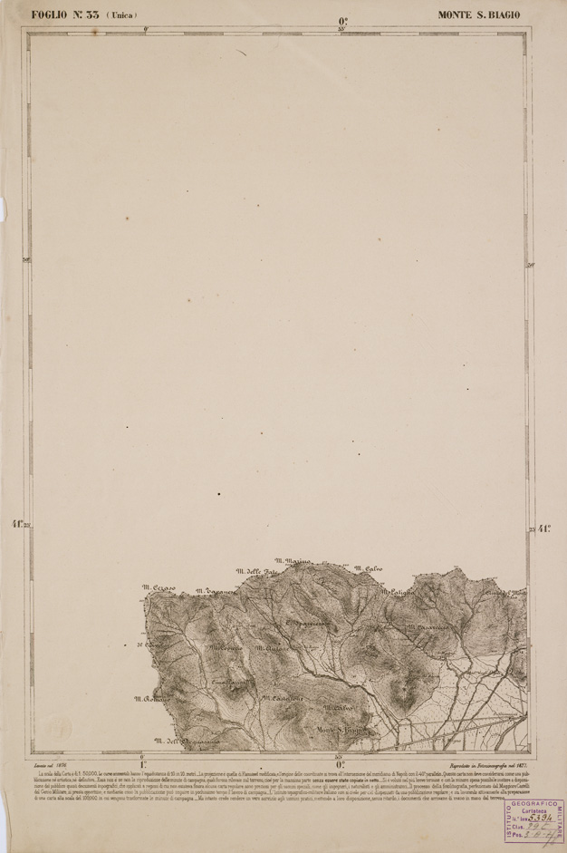 CARTA DELL' ITALIA MERIDIONALE EDITA DALL'ISTITUTO TOPOGRAFICO MILITARE ITALIANO - Foglio 33 - Monte S. Biagio