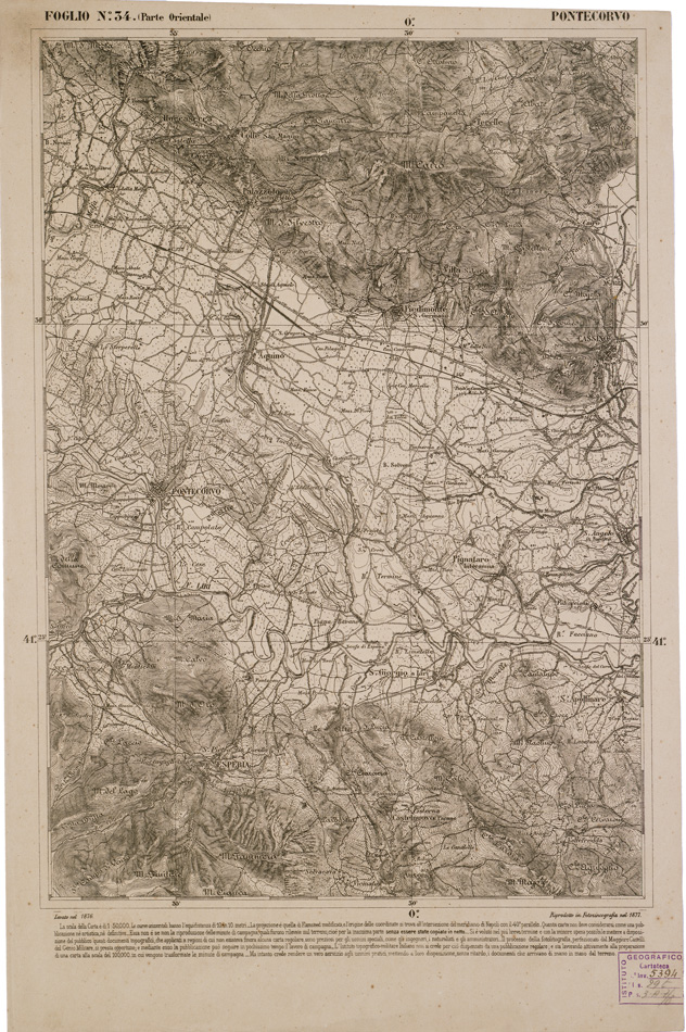 CARTA DELL' ITALIA MERIDIONALE EDITA DALL'ISTITUTO TOPOGRAFICO MILITARE ITALIANO - Foglio 34 parte orientale - Pontecorvo