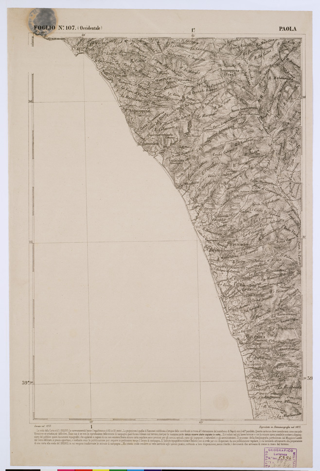 CARTA DELL' ITALIA MERIDIONALE... - Foglio 107 parte occidentale - Paola