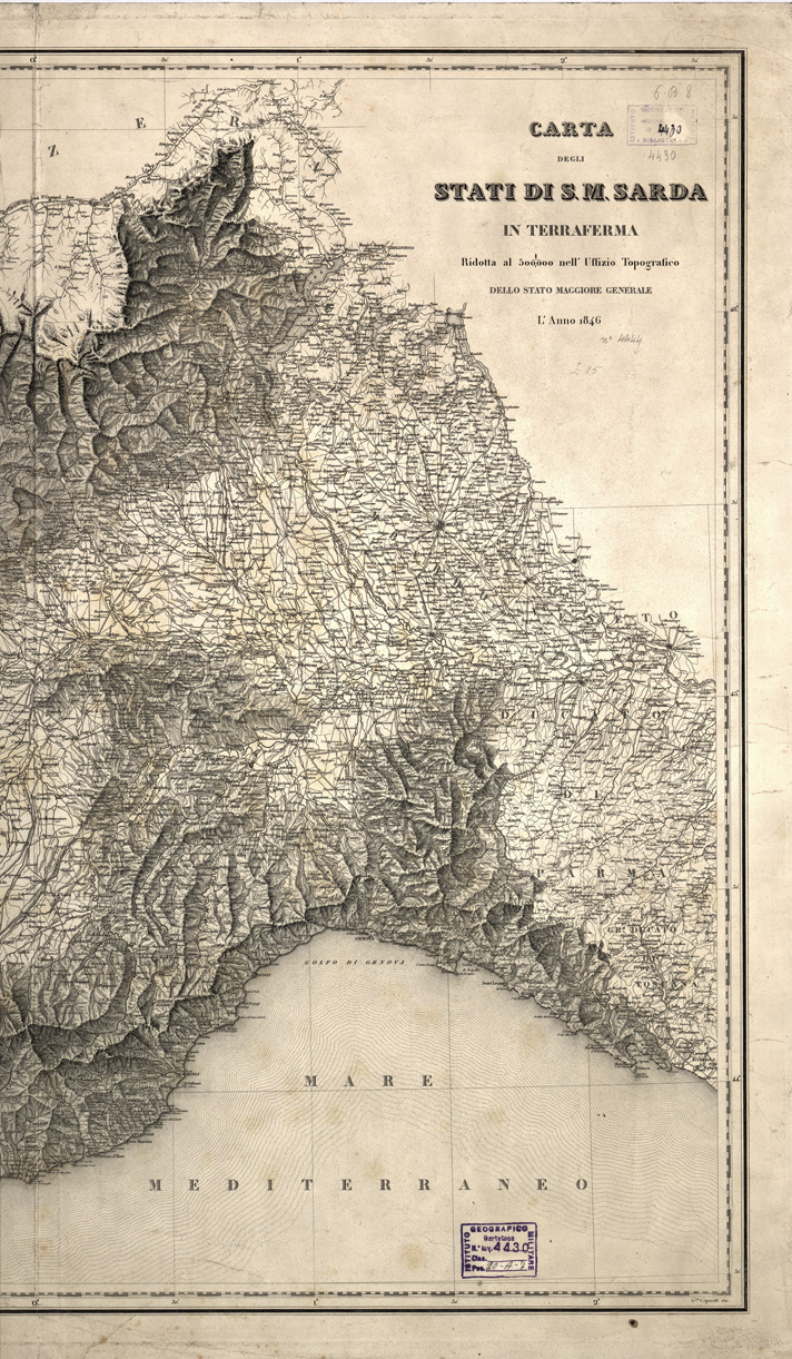 CARTA DEGLI STATI DI S. M. SARDA IN TERRAFERMA RIDOTTA AL 1:500.000 NELL'UFFIZIO TOPOGRAFICO DELLO STATO MAGGIORE GENERALE.L'ANNO 1846
