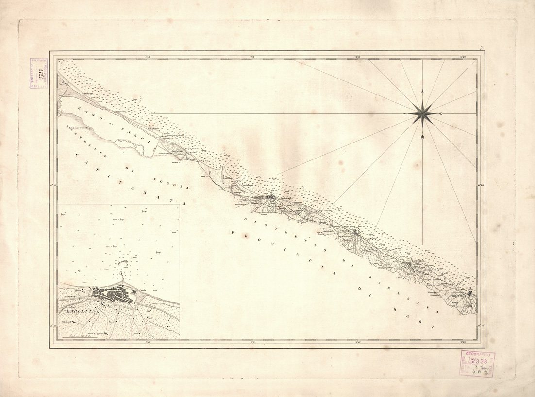 "Officio Topografico del Reame di Napoli. In basso a sinistra la pianta della città di Barletta."