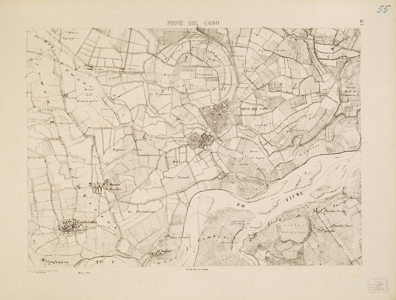 CARTA TOPOGRAFICA DELLA VALLE DEL PO' DA CASALE A PAVIA - Foglio 19 PIEVE DEL CAIRO