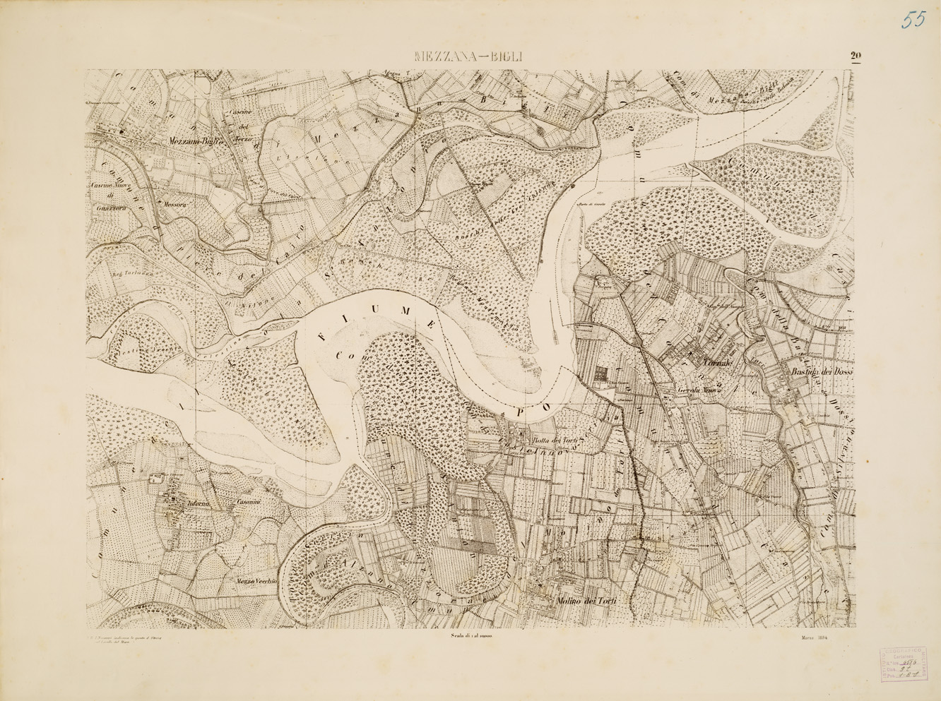 CARTA TOPOGRAFICA DELLA VALLE DEL PO' DA CASALE A PAVIA - Foglio 20 MEZZANA BIGLI