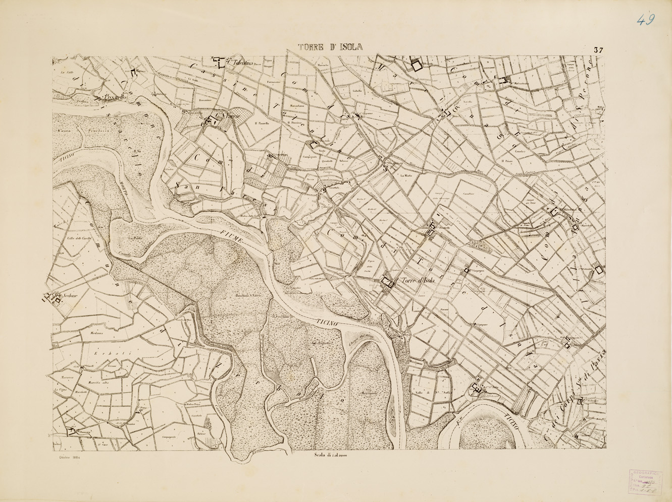 CARTA TOPOGRAFICA DELLA VALLE DEL PO' DA CASALE A PAVIA - Foglio 37 TORRE D'ISOLA