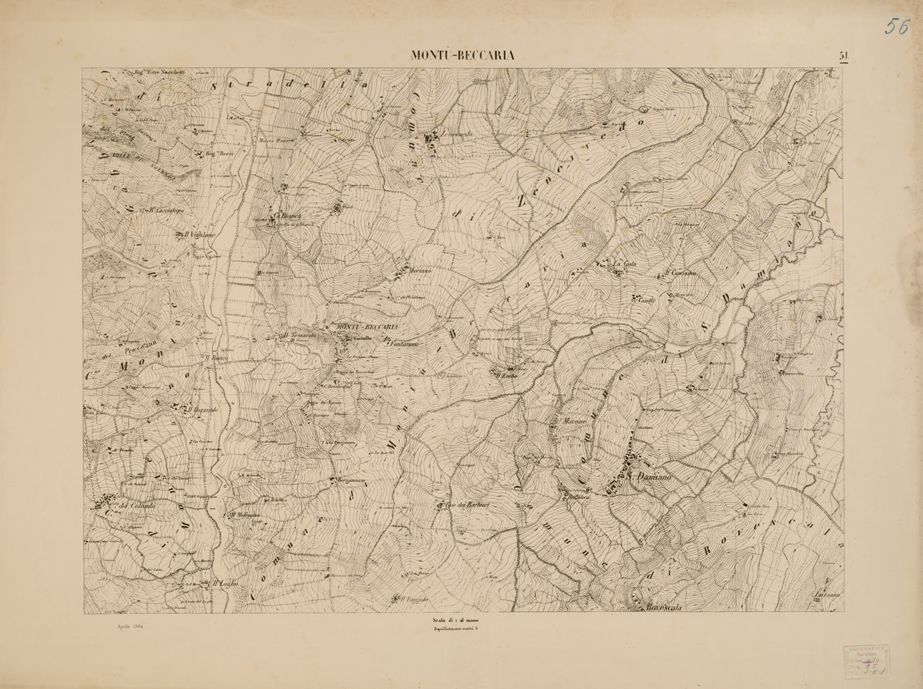 CARTA TOPOGRAFICA DELLA VALLE DEL PO' DA CASALE A PAVIA - Foglio 51 MONTU'BECCARIA