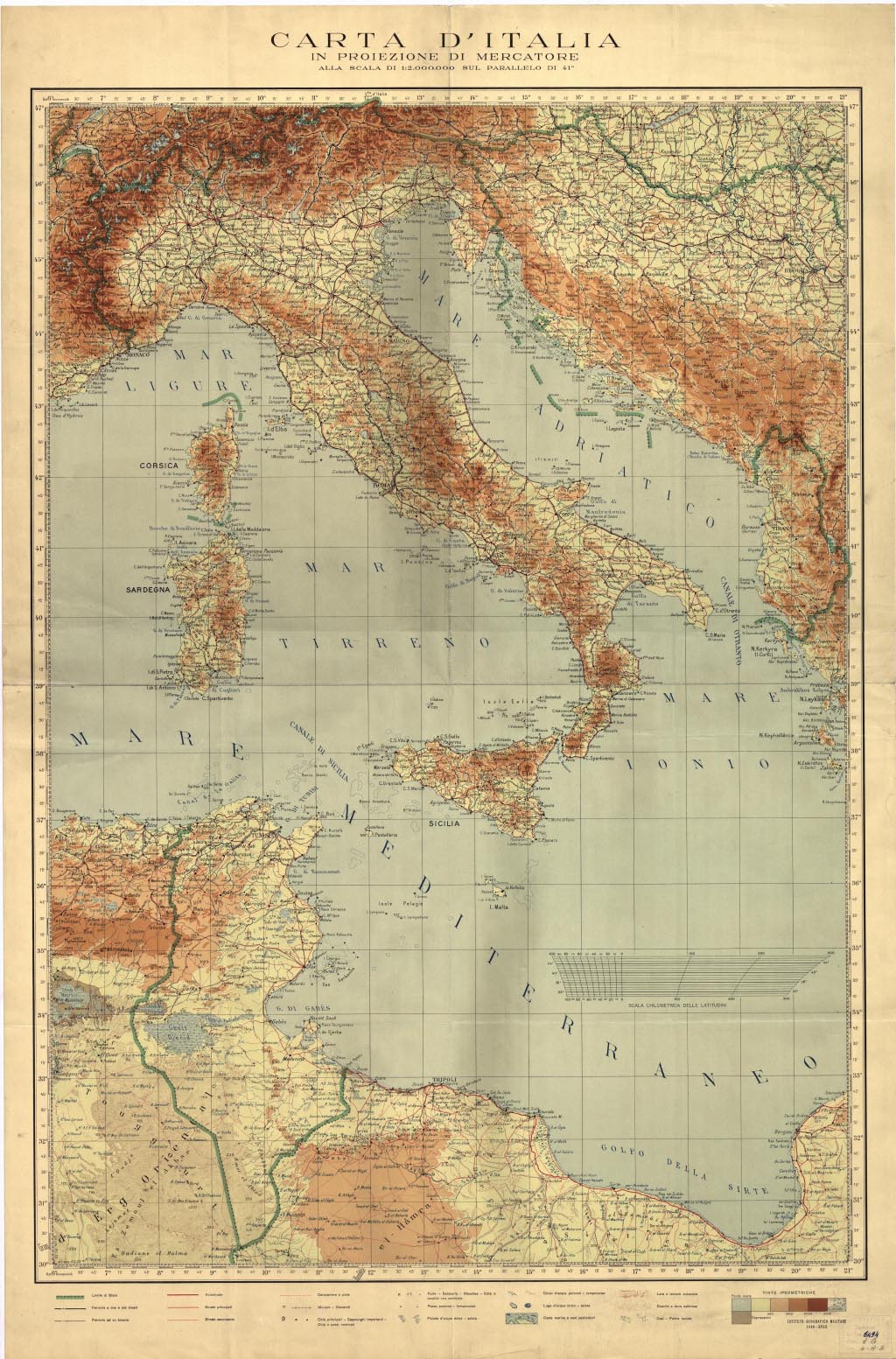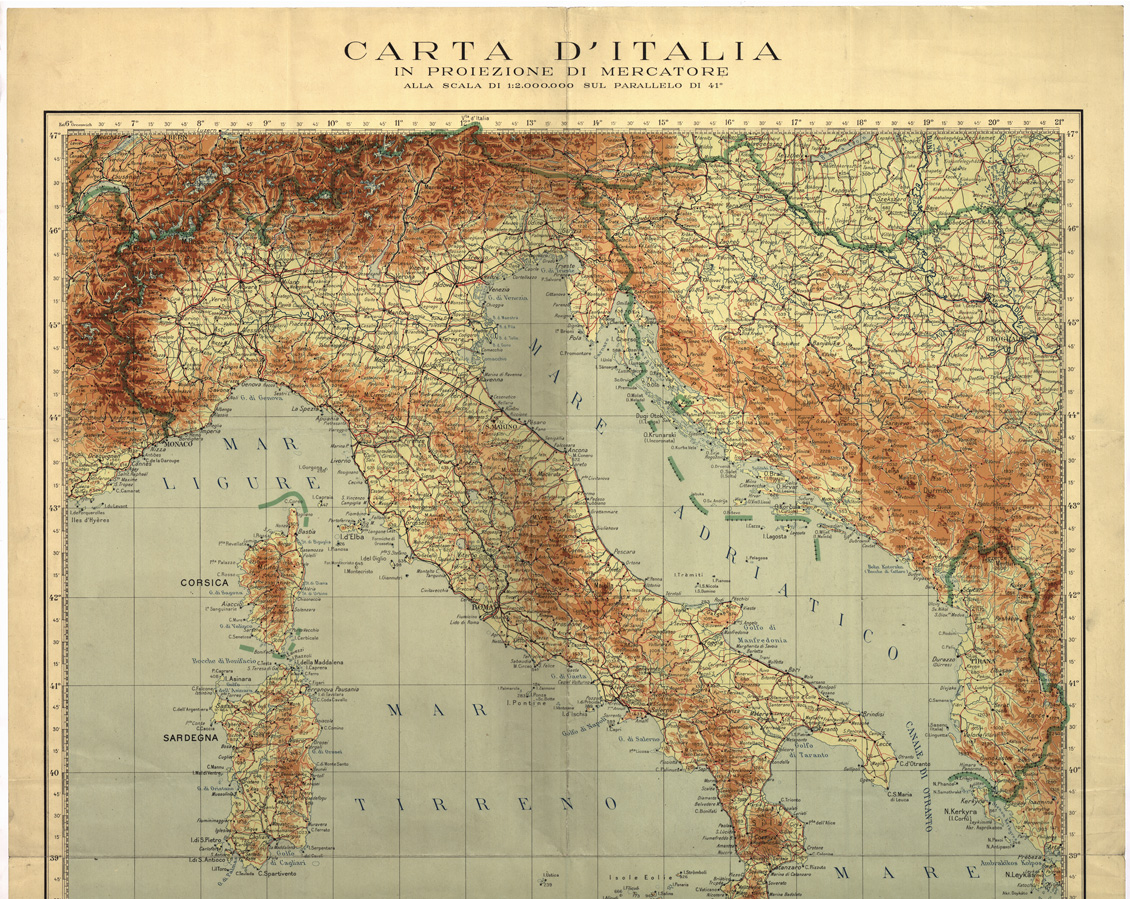 CARTA D'ITALIA IN PROIEZIONE DI MERCATORE