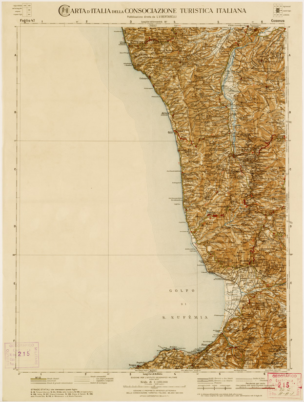 CARTA D'ITALIA DEL TOURING CLUB ITALIANO PUBBLICAZIONE DIRETTA DA L.V. BERTARELLI - Foglio 47 - Cosenza.