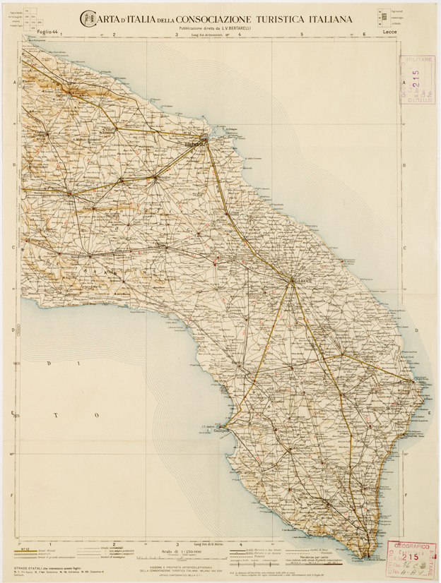 CARTA D'ITALIA DEL TOURING CLUB ITALIANO PUBBLICAZIONE DIRETTA DA L.V. BERTARELLI - Foglio 44 - Lecce.