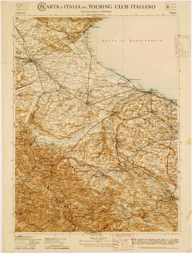 CARTA D'ITALIA DEL TOURING CLUB ITALIANO PUBBLICAZIONE DIRETTA DA L.V. BERTARELLI - Foglio 37 - Foggia.