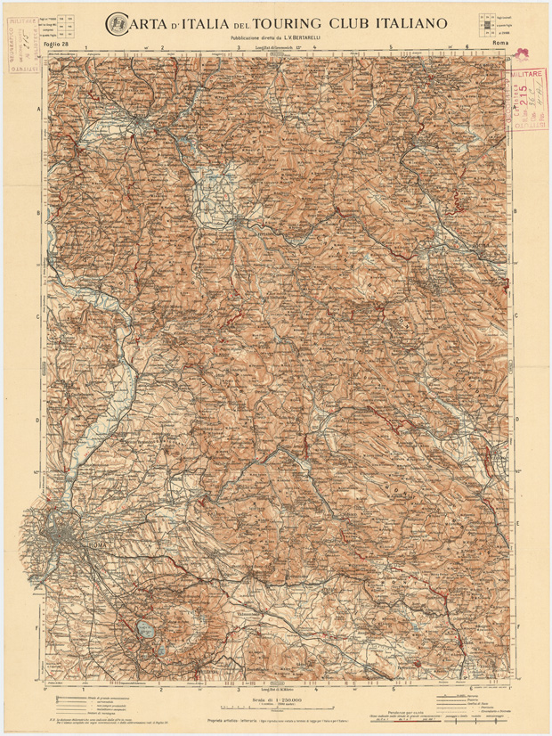 CARTA D'ITALIA DEL TOURING CLUB ITALIANO PUBBLICAZIONE DIRETTA DA L.V. BERTARELLI - Foglio 28 - Roma.