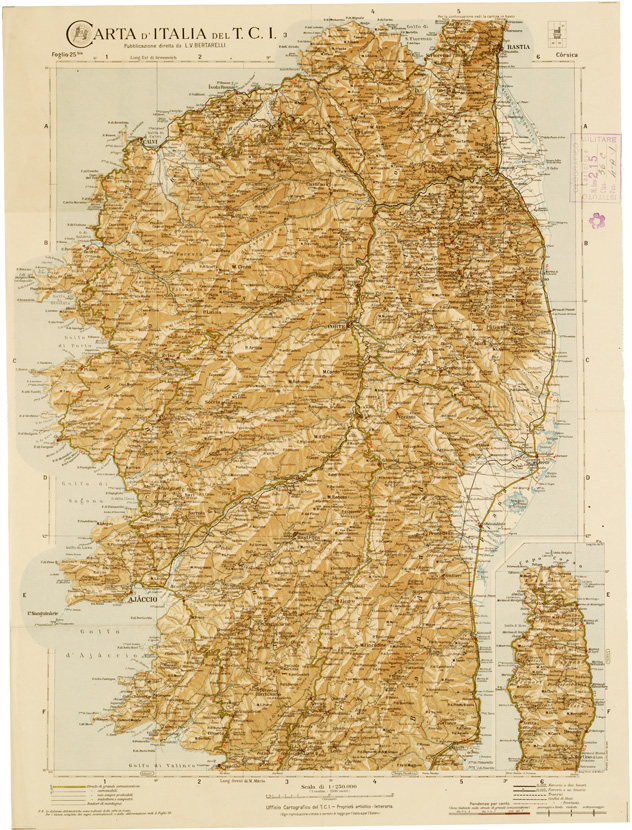 CARTA D'ITALIA DEL TOURING CLUB ITALIANO PUBBLICAZIONE DIRETTA DA L.V. BERTARELLI - Foglio 25 bis - Corsica.