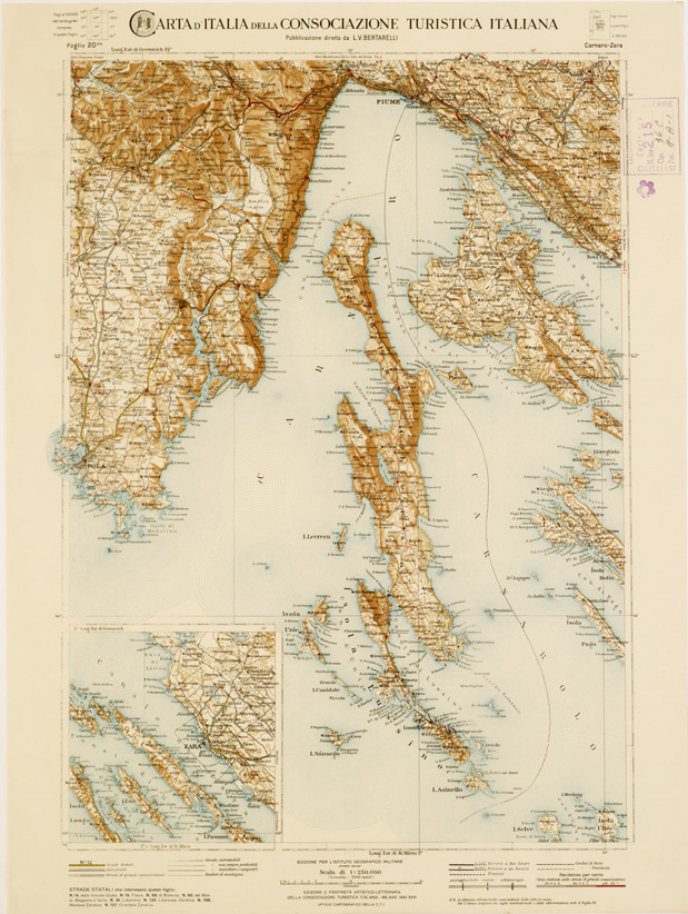 CARTA D'ITALIA DEL TOURING CLUB ITALIANO PUBBLICAZIONE DIRETTA DA L.V. BERTARELLI - Foglio 20 bis - Carnaro - Zara.
