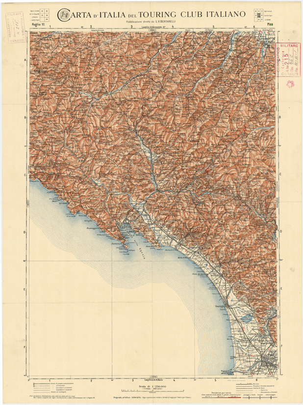 CARTA D'ITALIA DEL TOURING CLUB ITALIANO PUBBLICAZIONE DIRETTA DA L.V. BERTARELLI - Foglio 17 - Pisa.