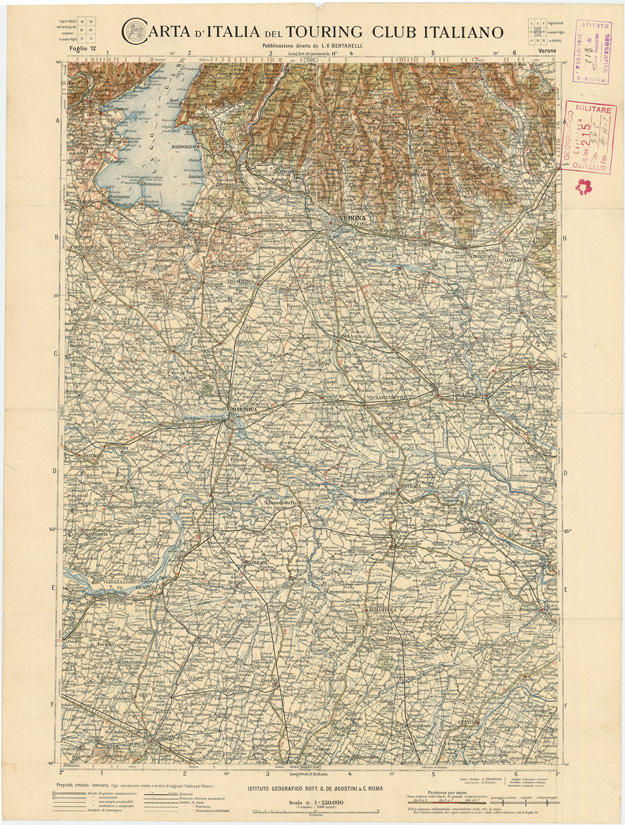 CARTA D'ITALIA DEL TOURING CLUB ITALIANO PUBBLICAZIONE DIRETTA DA L.V. BERTARELLI - Foglio 12 - Verona.