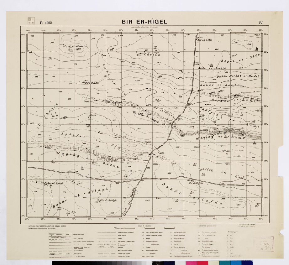"Autore Ufficio Topografico della Libia, I.G.M. Ingrandimento fotomeccanico del 100.000."