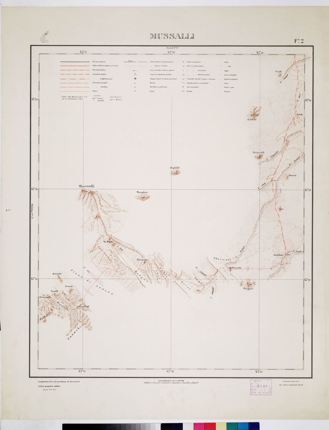 CARTA DEI CONFINI A.O.I. SOMALIA FRANCESE - Foglio 2 - Mussalli