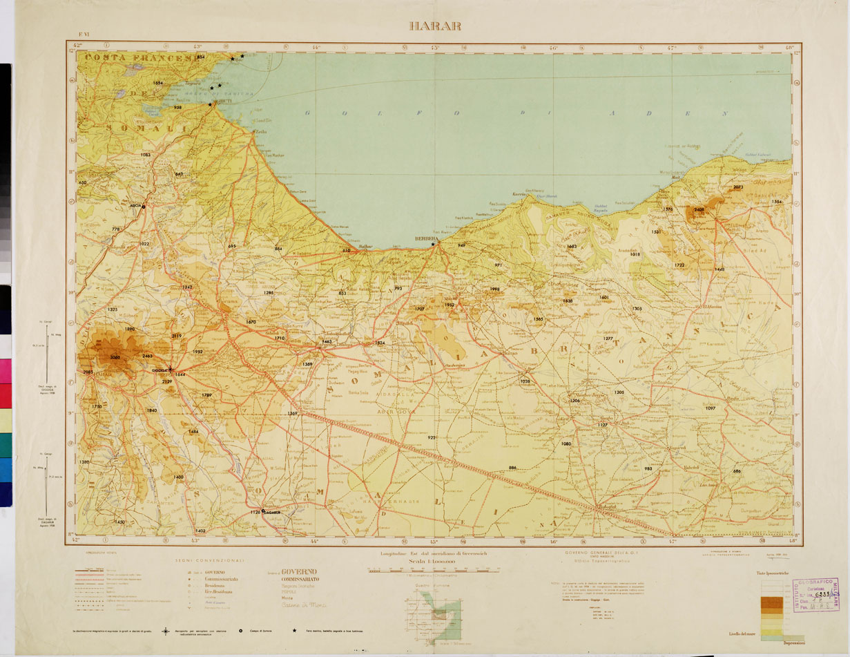 CARTA DELL'AFRICA ORIENTALE ITALIANA-TIPO AVIAZIONE ANNO 1938 - Foglio 6 - Harar