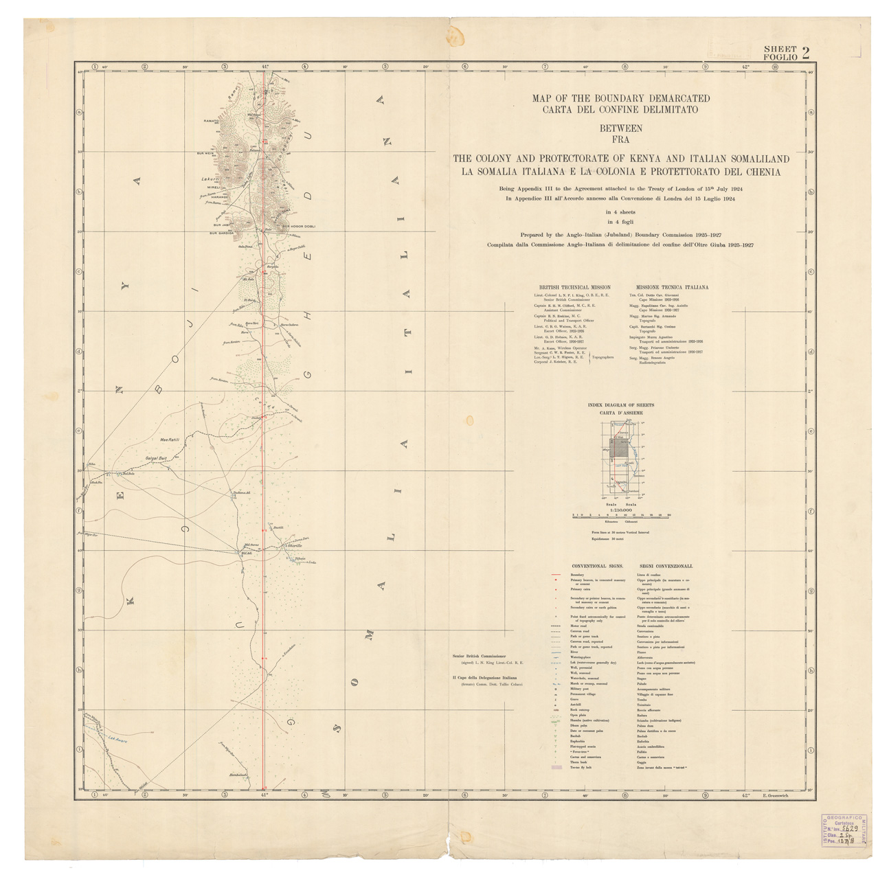CARTA DEL CONFINE DELIMITATO FRA LA SOMALIA ITALIANA E LA COLONIA E PROTETTORATO DEL CHENIA - Foglio 2