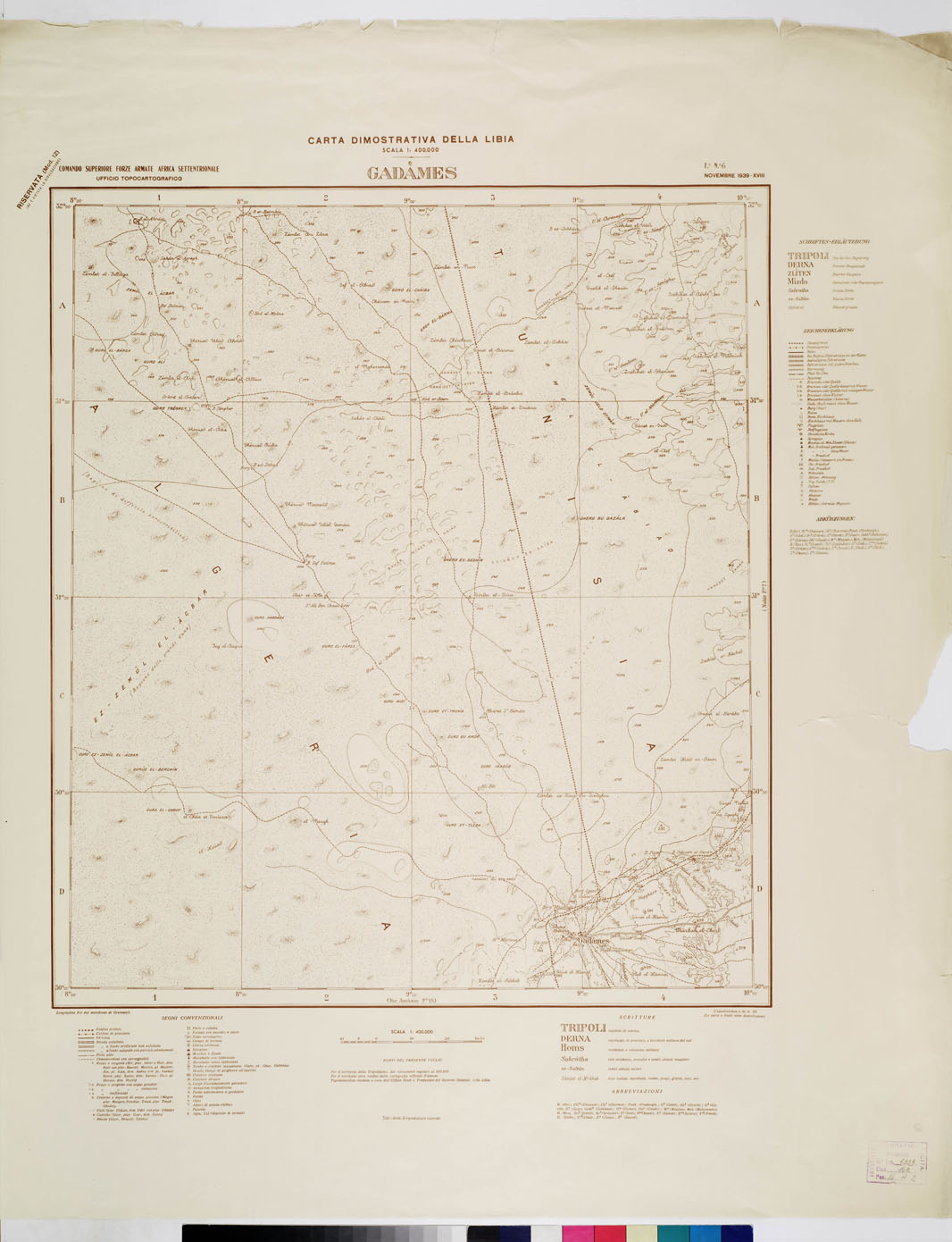 CARTA DIMOSTRATIVA DELLA LIBIA - Foglio 6 GADAMES NOVEMBRE 1939 XVIII