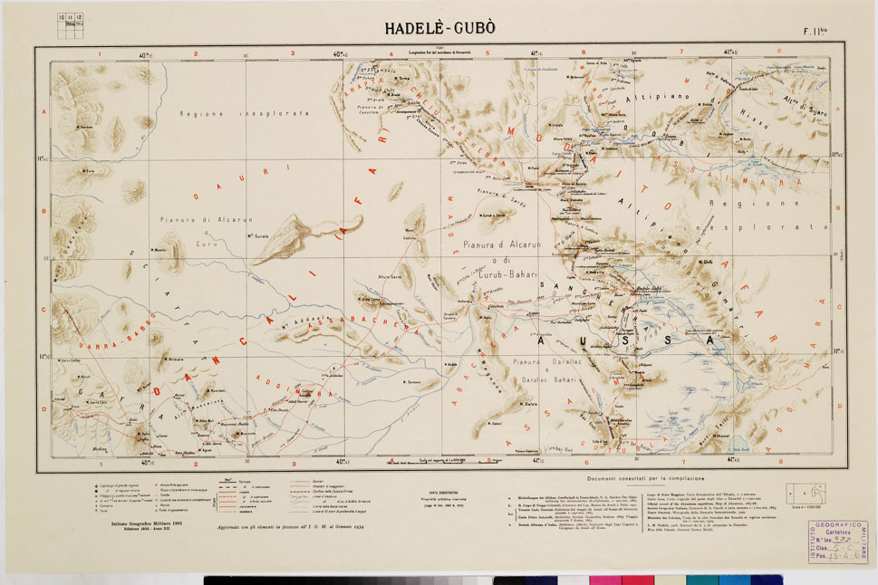 CARTA DIMOSTRATIVA DELLA COLONIA ERITREA E REGIONI ADIACENTI - Foglio 11 BIS HADELE'-GUBO'