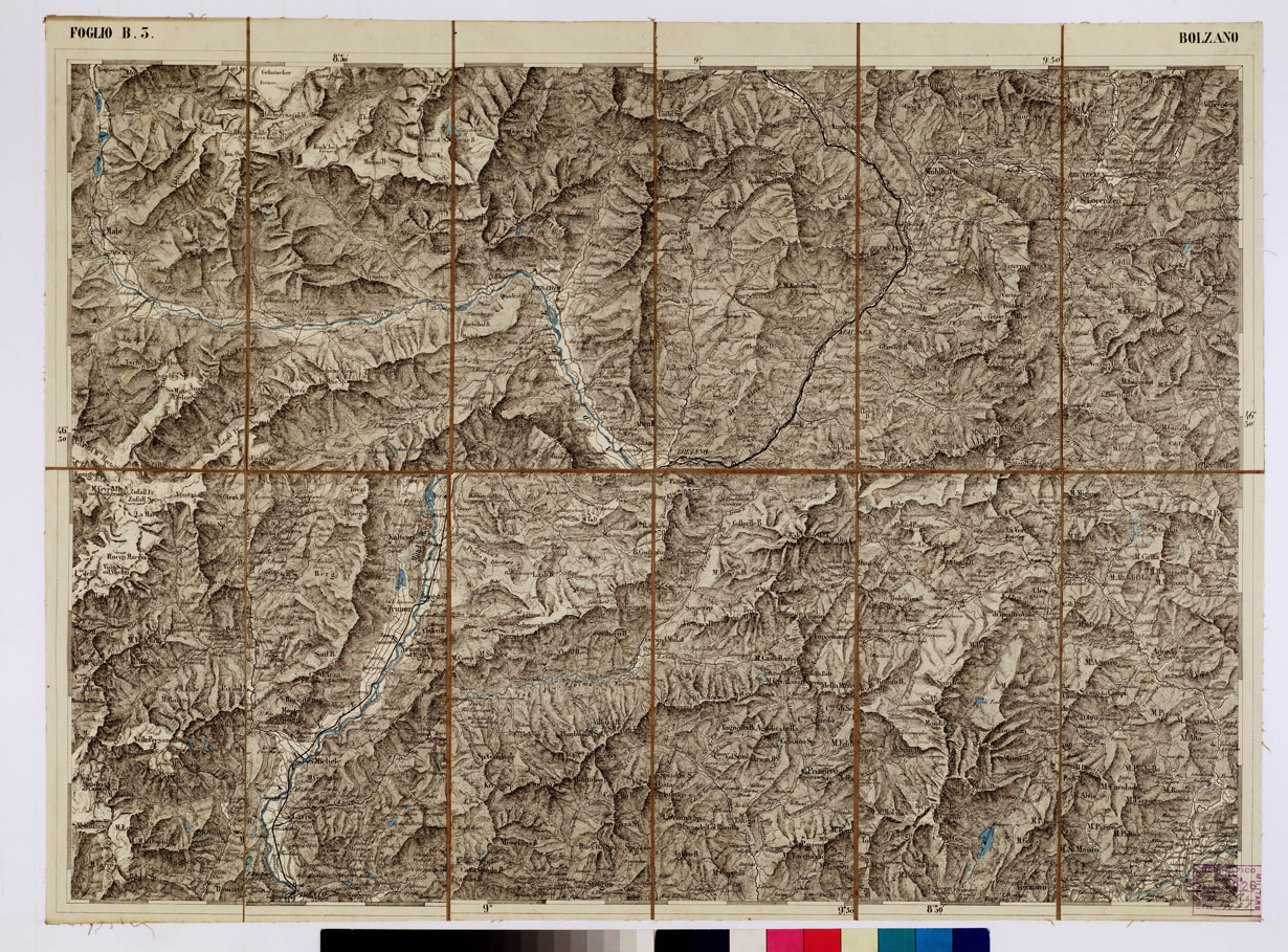 CARTA DEI VERSANTI MERIDIONALI E SETTENTRIONALI DELLE ALPI RETICHE CARNICHE E GIULIE - Foglio B 3 BOLZANO
