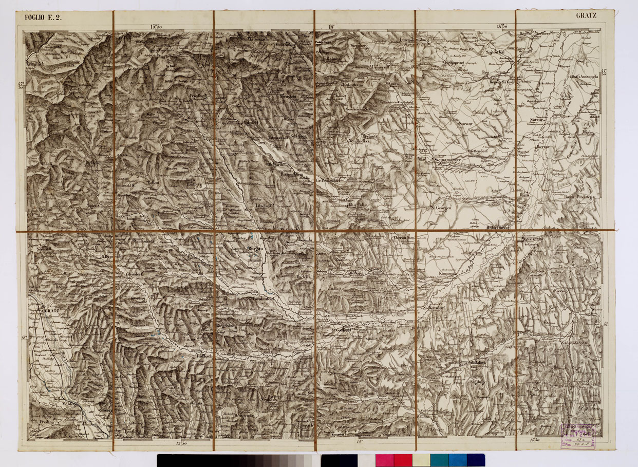 CARTA DEI VERSANTI MERIDIONALI E SETTENTRIONALI DELLE ALPI RETICHE CARNICHE - GIULIE - Foglio E 2 GRATZ